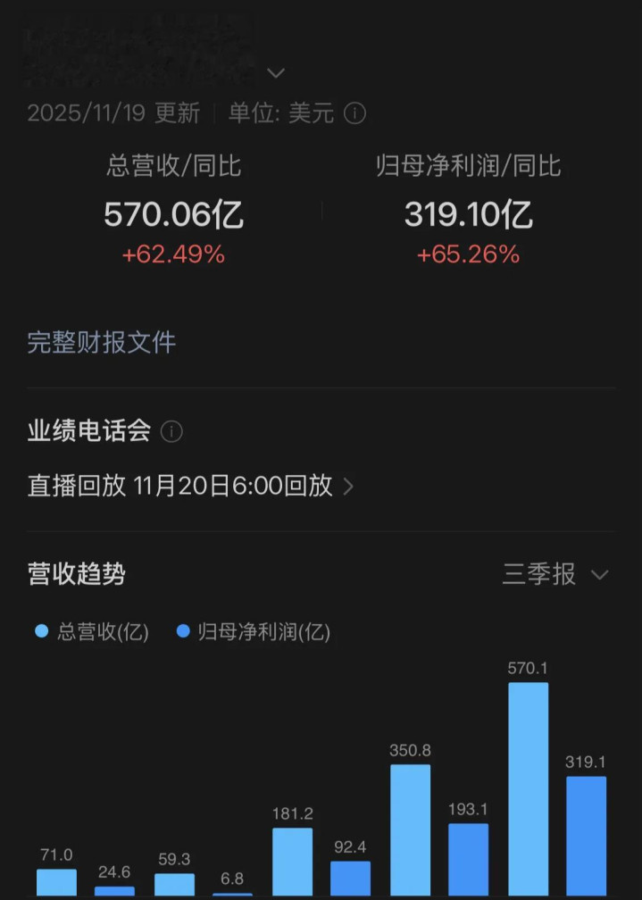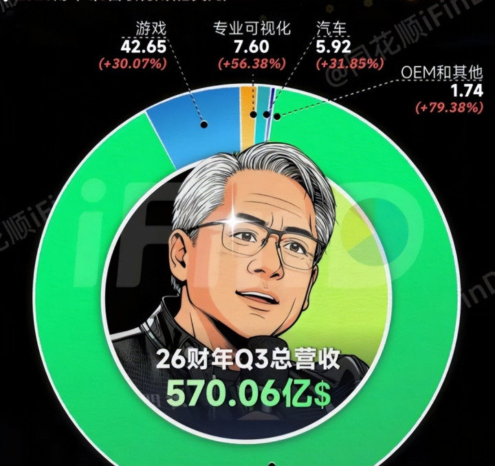 这一季度,英伟达营收达到570亿美元,净利润319.1亿美元,净利率高达56%。
