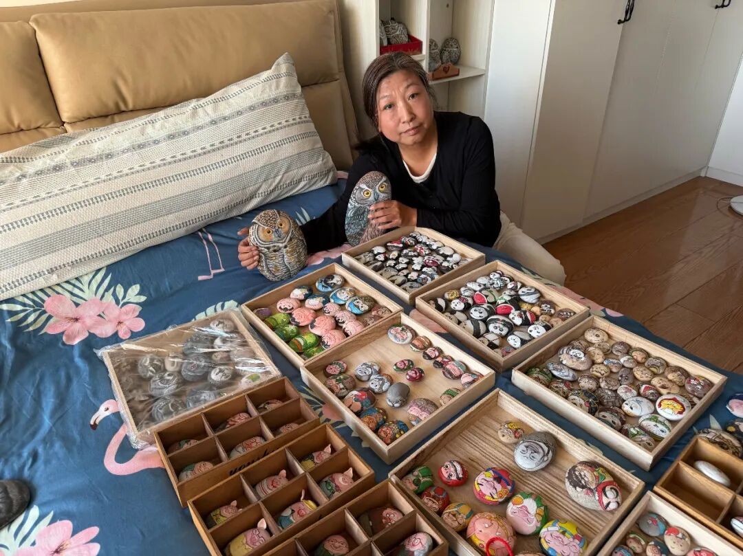 更重要的是,每一件“石头画”都带着郭秀梅亲手绘制的温度,是她与家人、朋友之间情感连接的纽带。经常有朋友向她求画,她每次都会精心构思、悉心创作、大方赠送。女儿出国上学后,她就将女儿的照片一笔笔画在石头上,当作生日礼物,传递对女儿的思念和爱意……未来,郭秀梅希望能把这门手艺教授给更多的人,让更多人感受石头画的魅力,体会这份创作背后的心意。