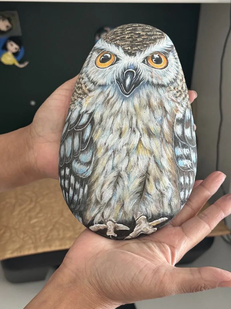 郭秀梅创作的石头画猫头鹰